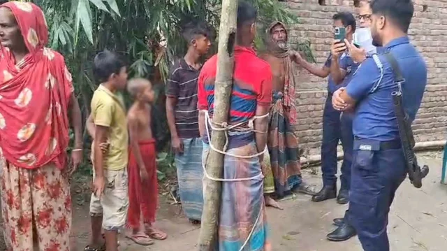 রাজবাড়ী পাংশায় পাওনা টাকা না পেয়ে শ্বশুরকে গাছের সঙ্গে বেঁধে