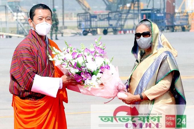 বঙ্গবন্ধুর জন্মশতবার্ষিকী ও স্বাধীনতার সুবর্ণজয়ন্তীর উৎসবে যোগ দিতে ঢাকায় পৌঁছেছেন ভুটানের প্রধানমন্ত্রী ডা. লোটে শেরিং। তিন দিনের রাষ্ট্রীয় সফরে আজ সকাল ৯টায় হযরত শাহজালাল আন্তর্জাতিক বিমানবন্দরে পৌঁছান তিনি। বিমানবন্দরে তাকে স্বাগত জানান প্রধানমন্ত্রী শেখ হাসিনা। এসময় ভুটানের প্রধানমন্ত্রীকে লাল গালিচা সংবর্ধনা দেয়া হয়। তাকে স্বাগত জানানো হয় ২১ বার তোপধ্বনি দিয়ে। এরপর ভুটানের প্রধানমন্ত্রীকে নিয়ে শেখ হাসিনা অভ্যর্থনা মঞ্চে পৌঁছালে তিন বাহিনীর সুসজ্জিত একটি দল গার্ড অব অনার দেয়। গার্ড পরিদর্শন শেষে ভুটানের প্রধানমন্ত্রীকে লাইন অব প্রেজেন্টেশনের সঙ্গে পরিচয় করিয়ে দেন প্রধানমন্ত্রী শেখ হাসিনা। পররাষ্ট্রমন্ত্রী একে আব্দুল মোমেন, প্রবাসী কল্যাণ মন্ত্রী ইমরান আহমেদ, ডাক ও টেলিযোগাযোগমন্ত্রী মোস্তফা জব্বার, মন্ত্রিপরিষদ সচিব খন্দকার আনোয়ারুল ইসলাম, প্রধানমন্ত্রীর মুখ্য সচিব আহমদ কায়কাউস এবং তিন বাহিনীর প্রধান এ সময় উপস্থিত ছিলেন। প্রতিবেশী দেশের এই সরকারপ্রধানের আগমন উপলক্ষে বিমানবন্দর এলাকা বর্ণিল সাজে সাজানো হয়।