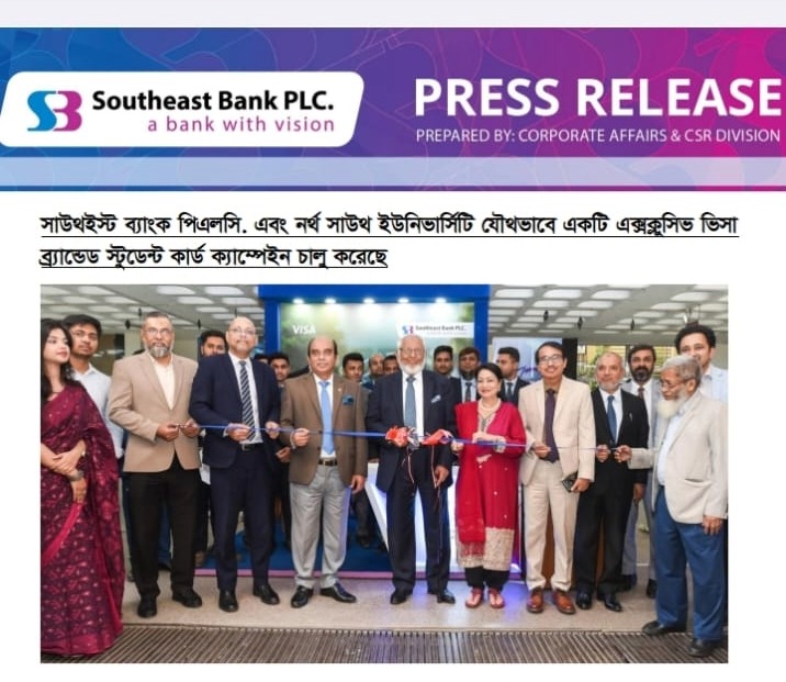 সাউথইস্ট ব্যাংক পিএলসি. এবং নর্থ সাউথ ইউনিভার্সিটি যৌথভাবে একটি এক্সক্লুসিভ ভিসাব্র্যান্ডেড স্টুডেন্ট কার্ড ক্যাম্পেইন চালু করেছে